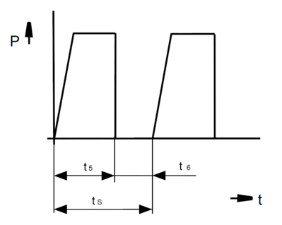 Im Aussetzbetrieb (S3) wechseln Einschaltdauer und stromlose Pause in regelmäßiger oder unregelmäßiger Folge, wobei die Pausen so kurz sind, dass sich das Gerät nicht auf seine Bezugstemperatur bzw. Ausgangstemperatur abkühlt.