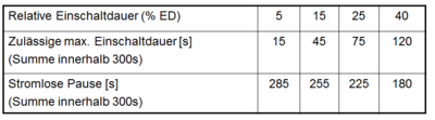 Die zulässige Einschaltdauer wird in % angegeben und errechnet sich wie folgt: