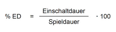 Die relative Einschaltdauer ED angegeben in %, ist das prozentuale Verhältnis von Einschaltdauer t5 zur Spieldauer tS.